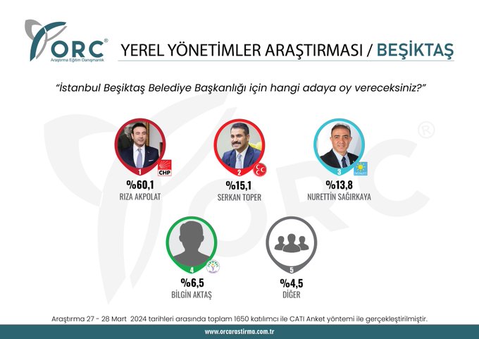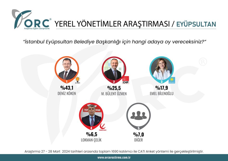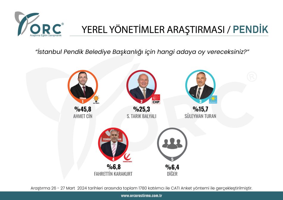 Yerel Seçimlere saatler kala ORC Araştırma şirketi, İstanbul'un Beşiktaş, Eyüpsultan, Pendik, Ümraniye ve Üsküdar ilçelerinde yerel seçime dair anket sonuçlarını açıkladı.