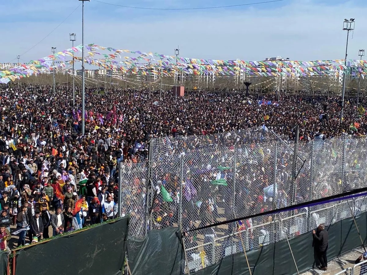 HDP, DBP, DTK öncülüğünde merkez Bağlar İlçesi’nde yapılan kutlamada HDP’nin kapatma davası nedeniyle seçimlere gireceği belirtilen Yeşil Sol Parti bayrakları kullanıldı. Son yıllarda sahne ile kutlama alanı arasına konulan tel örgü bu yıl da yer aldı. 5 km’lik alanın polis bariyerleri ile çevrildiği kutlamada 7 bin polis görev yaptı.