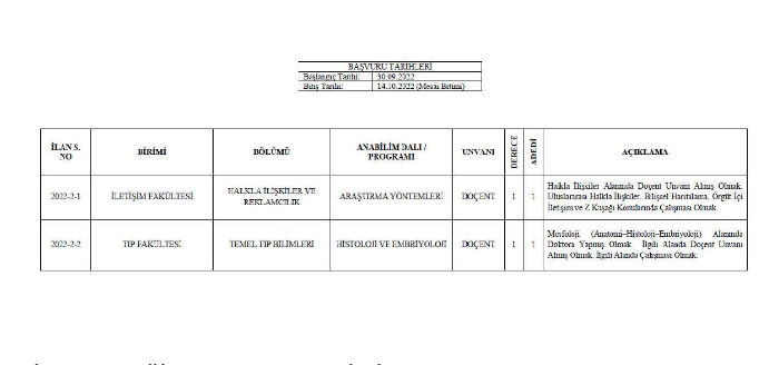 ADÜ, geçen eylül ayında İletişim ve Tıp fakültelerinde görevlendirilmek üzere iki doçent alınacağını duyurdu.