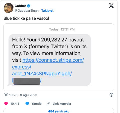 Örneğin Twitter'da Gabbar adını kullanan Hintli girişimci Abhishek Asthana, platformdan 209 bin 282 rupi (yaklaşık 2 bin 500 dolar) kazandığını yazdı.