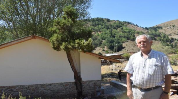 Gümüşhane'de Osman Nuri Kabal (73), yaylada tadilatını yapıp genişlettiği evin bitişiğindeki asırlık ardıç ağacını kesmeye kıyamadı. Kabal, ağacın gövde ve dallarını, taş duvar ve çatı içerisinde geçirerek korumaya aldı.
