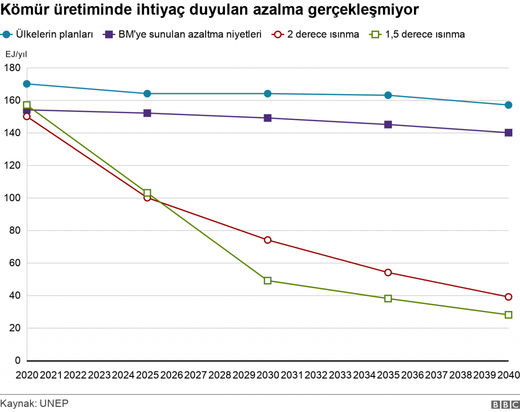 BM Çevre Programı (UNEP) hükümetlerin 2030’da, küresel ısınmayı 1,5 derece artışla sınırlamak için gereken maksimum miktarın iki katından daha fazla fosil yakıt üretmeyi planladığını duyurdu. En büyük artış doğal gaz ve petrol üretiminde planlanırken yalnızca kömür üretiminde ufak bir miktar azalma öngörülüyor. UNEP, konuyla ilgili ilk raporun açıklandığı 2019 yılından bu yana çok az değişiklik yaşandığını aktarıyor.