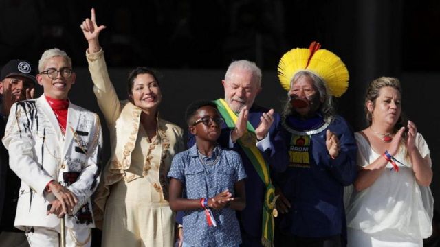 Lula da Silva, Bolsonaro ülkede olmadığı için yetkiyi bir çöp toplayıcısı olan Eni Souza’dan aldı. Kapsayıcı bir şekilde düzenlenen törende Lula’nın yanında yerli bir lider, siyah bir engelli influencer çocuk da yer aldı. Irkçılığın yoğun olduğu ülkede bu poz önemliydi. Bolsonaro destekçilerinin törene saldırabileceği nedeniyle Brasilia kentindeki polislerin tamamı (yaklaşık 8 bin) görev başındaydı.
