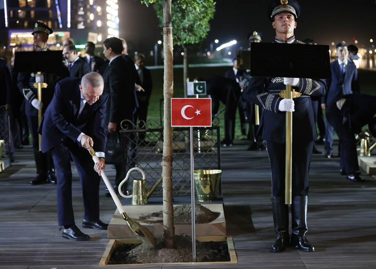 Cumhurbaşkanı Tayyip Erdoğan, Şanghay İşbirliği Teşkilatı 22. Devlet Başkanları Zirvesi’ne katılmak üzere gittiği Özbekistan’da, Rusya Cumhurbaşkanı Vladimir Putin ile ayaküstü sohbet etti. İki liderin, bugün görüşme yapması bekleniyor. Cumhurbaşkanı Erdoğan, havalimanındaki karşılamanın ardından Özbekistan Birinci Cumhurbaşkanı İslam Kerimov’un da kabrinin bulunduğu Hazreti Hızır Türbesi’ne ziyarette bulundu. Erdoğan, programı kapsamında zirvenin düzenleneceği kongre merkezinde diğer liderlerle ağaç dikme törenine katıldı. Cumhurbaşkanı Erdoğan, daha sonra liderlerle birlikte kentin yeni inşa edilen ve “Ebedî Şehir” olarak anılan bölgesini gezdi.