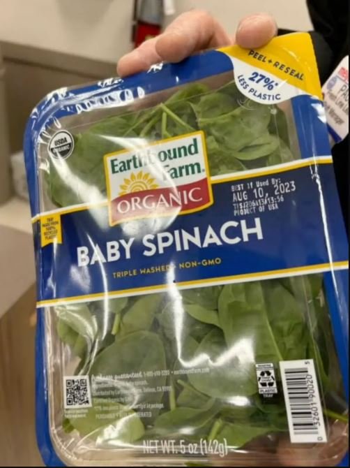 Amber Worrick isimli kadın, Southfield’deki Meijer süpermarkette Earthbound Farms’ın yıkanmış ve ayıklanmış organik ıspanak paketini satın aldı.