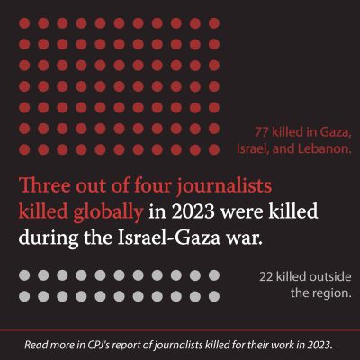 ABD merkezli Gazetecileri Koruma Komitesi (CPJ), dün açıklama yaparak 2023 yılında dünya çapında 99 gazeteci ve medya çalışanının öldürüldüğünü ve bunun, dörtte üçünden fazlasının Gazze’deki saldırılarda öldürüldüğünü duyurdu. CPJ açıklamasında “2023 küresel toplamı 2015'ten bu yana en yüksek rakamdır ve 2022'ye göre neredeyse yüzde 44'lük bir artış göstermiştir” denildi. CPJ verilerine göre 77 gazetecinin Gazze, Lübnan ve İsrail'de öldürüldüğünü, 22 kişinin ise bölge dışında hayatını kaybettiğini belirtti.
