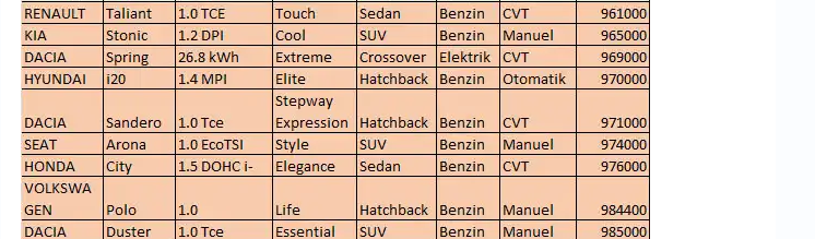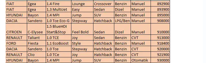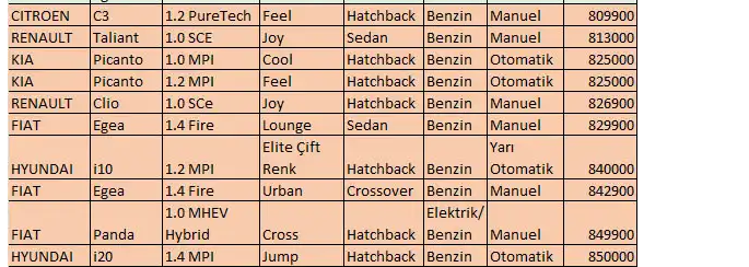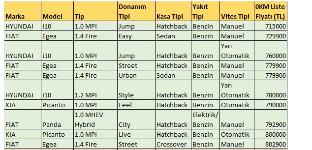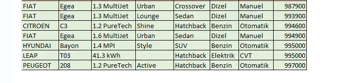 1 milyon TL'nin altında alınabilecek sıfır otomobiller