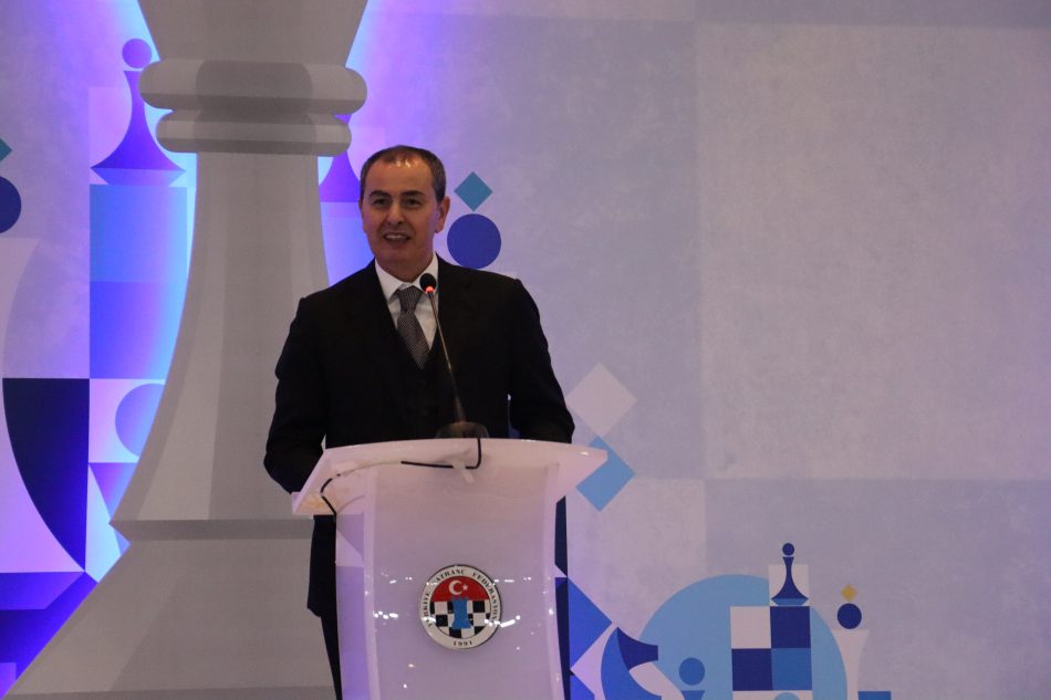 “Her yıl ülkemizin doğusundan batısına, güneyinden kuzeyine 7-18 yaş grubunda binlerce satranç sporcusunun rekor katılımla eşlik ettiği bir spor şölenindeyiz. Avrupa’nın rekor katılımlı satranç şampiyonasını düzenliyoruz. Bu şampiyonanın tüm sporcularımızın gelişiminde ve geleceğinde önemli rol oynayacağını düşünüyorum. Heyecanımız her yıl daha da artıyor, genç sporcularımızın, ailelerimizin artan ilgisi bize Türk satrancının yarınları adına umut veriyor. Bu şampiyonayı her sene daha da yüksek katılımla yapıyor, kendi rekorumuzu kırıyoruz. Türkiye’nin en çok lisanslı sporcu sayısına sahip satranç sporunun bugünü ve geleceği adına bu organizasyon çok önemlidir. İş Bankası ile yürüttüğümüz yol arkadaşlığıyla alt yapıya yaptığımız yatırımlar, uyguladığımız strateji ve verdiğimiz emek bu ülkede satranç sevgisini büyüttü, başarıları büyüttü. İlklere imza attık. Olimpiyatlardan, Avrupa ve Dünya şampiyonalarına kadar alınan başarılar ile uluslararası alanda artık bir Türk satrancı gerçeği var. Bu başarının altında da çok büyük emek yatıyor. Alt yapıya yaptığımız yatırımlar, satranç sevgisini de başarısını da büyüttü. Arka planda sevgiyle, disiplinle, özveriyle işleyen bir sistem kurduk. Satrancı her yaştan gencimizin ulaşabileceği bir spora dönüştürdük. Projelerimizle, azimle yürüttüğümüz faaliyetlerimizle fark yarattık. Bu başarıları elde etmemizde bizden desteklerini eksik etmeyen Gençlik ve Spor Bakanımız Sayın Dr. Osman Aşkın Bak’a, şampiyonaya teşrifleriyle bizleri onurlandıran Aile ve Sosyal Hizmetler Bakanımız Sayın Mahinur Özdemir Göktaş’a, aramızda olmasından mutluluk duyduğumuz Türkiye İş Bankası Genel Müdürü Sayın Hakan Aran’a ve 18 yıldır yol arkadaşımız olan İş Bankası Ailesine, Antalya Gençlik ve Spor İl Müdürlüğüne, sponsorlarımıza, turnuvaya emek veren teknik ekibimize, kıymetli ailelerimize ve çok kıymetli sporcularımıza teşekkürlerimizi sunuyorum.”