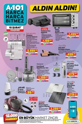15 Şubat 2024 A101 indirimli ürünler kataloğu yayınlandı. Bu hafta A101'de overlok makinesi ayağınıza geliyor. A101 15 Şubat 2024 Perşembe günü market raflarında yerini alacak ürünler listesi haberimizde...A101 15 Şubat 2024...