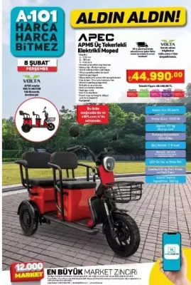 A101 aktüel 8 Şubat 2024 kataloğu alışveriş severler tarafından bu hafta da ilgi görüyor. Ev ve kişisel ihtiyaçlarını karşılamak isteyen A101 market takipçileri bu hafta neler var merak ediyor. A101 aktüel ürünler kataloğu içerisinde; Evcil Hayvan Elektrik Süpürgesi ve Tüy Kurutma Bakım Seti 2.990 TL, APEC APM5 Üç Tekerlekli Elektrikli Moped 44.990 TL, Kameralı Akıllı Evcil Hayvan Besleyici 1.699 TL, Evcil Hayvan Tarama Fırçası 69,90 TL'den satışta olacak. Peki, A101'de bu hafta neler var? İşte, A101 aktüel ürünler kataloğu 8 Şubat 2024 Perşembe!