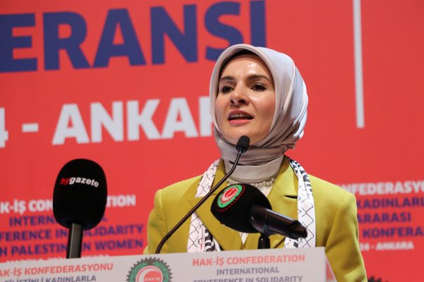Aile ve Sosyal Hizmetler Bakanı Mahinur Özdemir Göktaş, Ankara Ticaret Odası Kongre Merkezi'nde Hak İşçi Sendikaları (HAK-İŞ) Konfederasyonu tarafından düzenlenen 'Filistinli Kadınlarla Dayanışma Konferansı'na katıldı. HAK-İŞ Genel Başkanı Mahmut Arslan ile yurt içi ve yurt dışından gelen çok sayıda kadın konuğun katılımıyla gerçekleştirilen program, Kur'an-ı Kerim tilaveti ve Filistin'de hayatını kaybedenlere dua okunmasıyla başladı.