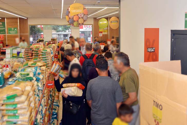 Sırada bekleyenlerin çoğu kapılar açılınca bakliyat ürünlerine yöneldi. Fiyatlarda değişiklik olmadığını görenler, “Fiyatlar aynı, 5 kuruş indirim yok, hiçbir şey düşürmemişler” diye sitem ederken, alışveriş arabaları boş kaldı.