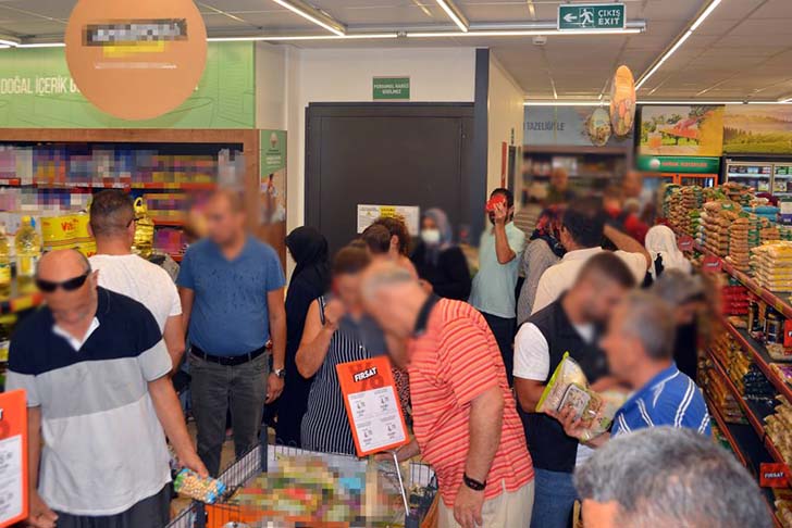 Marketin içinde ise etiketlerden memnuniyetsizliğini seslendiren müşteriler vardı, “Bu fiyatlar dünle aynı, nerede indirim. Siz bizimle dalga mı geçiyorsunuz? Neyin fiyatını düşürdünüz de bizi buraya çağırdınız” soruları duyuluyordu.