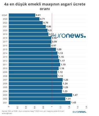 2024 başında oran ise 0,61. Emekli maaşlarında kayda değer bir iyileştirme olmazsa 2024 yılı 2001 yılından bu yana en kötü yıl olacak.