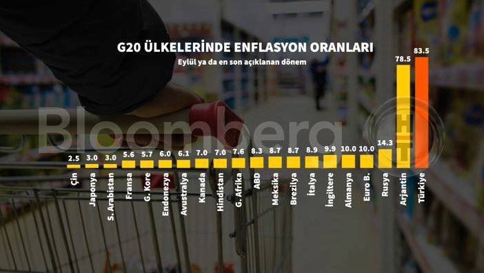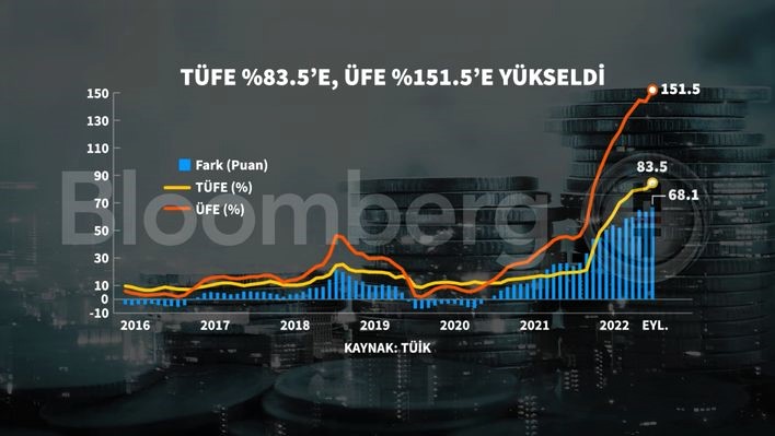 Türkiye İstatistik Kurumu (TÜİK), eylül ayına ilişkin enflasyon oranlarını açıkladı. TÜİK verilerine göre, enflasyon (TÜFE) aylık yüzde 3.08, yıllık ise yüzde 83.45 arttı.