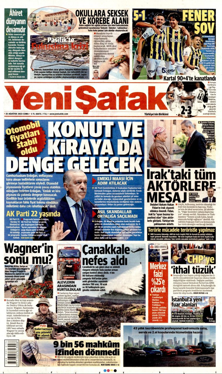 2 sene önce faizi yüzde 19'a çıkaran eski TCMB Başkanı Naci Ağbal'ı hedef alarak "Bu operasyonu kimin adına çektiniz?" manşeti atan, geçen ayda yeni başkan Hafize Gaye Erkan'ın yaptığı faiz artışına "Bu son olsun!" manşetiyle tepki gösteren Yeni Şafak ise faizin 750 baz puanla yüzde 25'e çıkarılmasını tepkisiz kaldı.