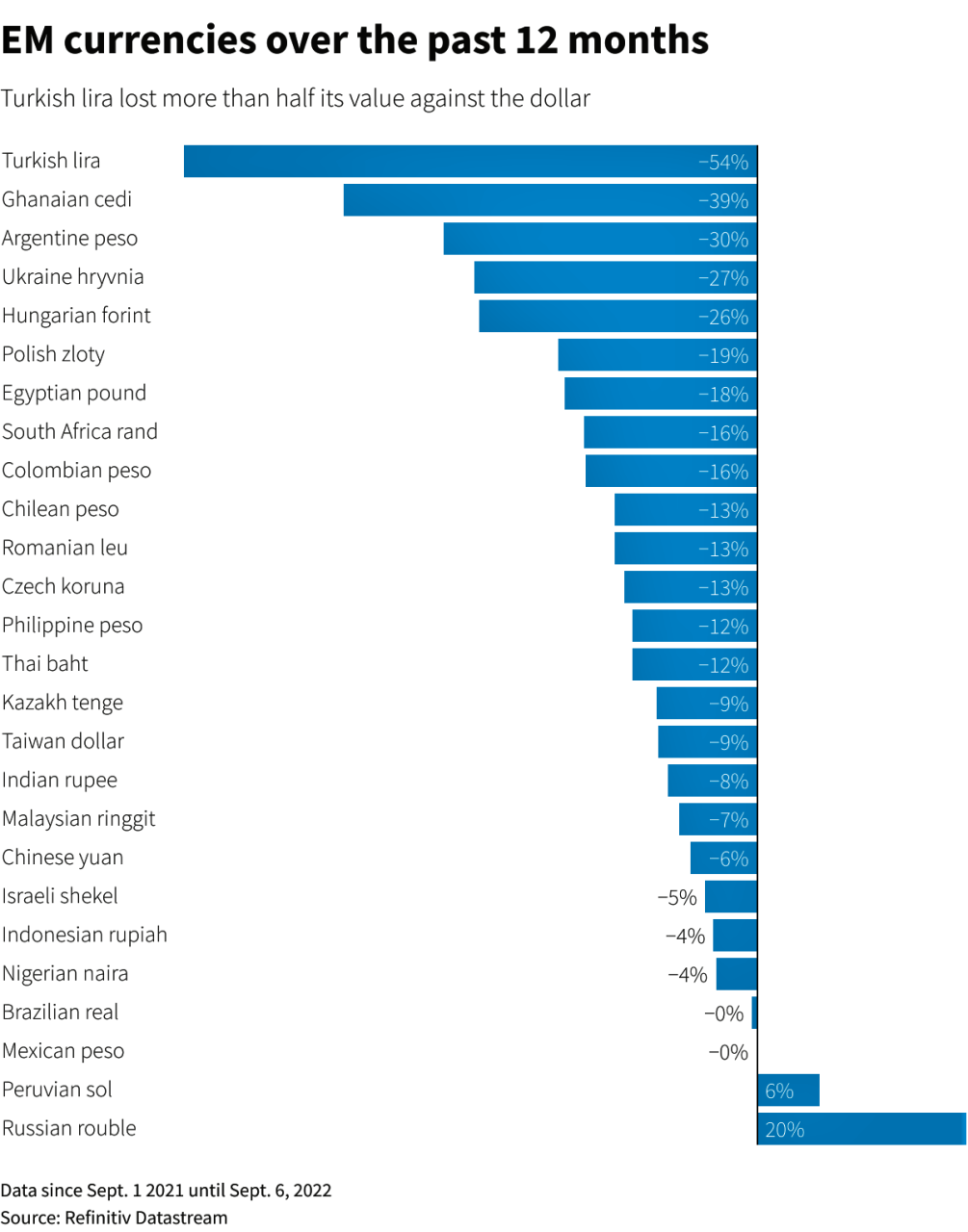 AKP lideri Cumhurbaşkanı Tayyip Erdoğan’ın “Faiz sebep enflasyon sonuç… Nass (İslami kural) oradayken bize ne oluyor” diyerek piyasa şartları uygun olmadığı halde faiz indiriminde ısrarıyla başlattığı yeni ekonomi modelini uluslararası haber ajansı Reuters yakın plana aldı. Ajans 5 grafikte Türkiye ekonomisinde son bir yılda yaşananları özetledi.