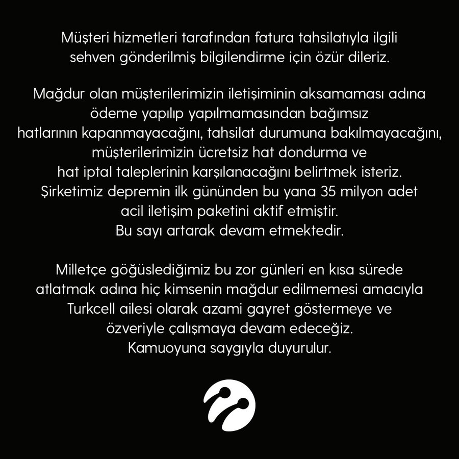 Türkiye’yi sarsan depremin ardından en çok eleştirilen hizmet alanı iletişim oldu. GSM operatörleri depremin üzerinden yedi gün geçmesine rağmen hala bölgedeki iletişimi tam olarak sağlayamadı. Hala operatörler üzerinde tartışma devam ederken bu alanda dikkat çekici açıklama Cumhurbaşkanı Yardımcısı Fuat Oktay’dan geldi. AFAD merkezinde deprem sonrası çalışmalara ilişkin açıklama yapan Oktay, “Türk Telekom, Turkcell ve Vodafone, depremin olduğu andan itibaren bir aylık süre için tüm görüşmeleri ücretsiz sağlayacak” dedi.
