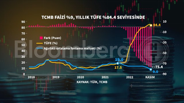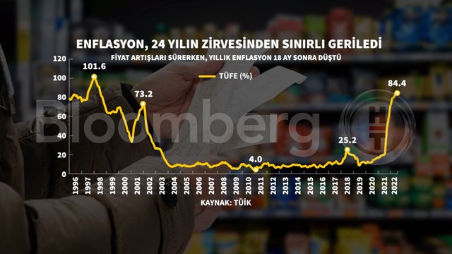 Yıllık enflasyon, baz etkisiyle 18 ay sonra ilk kez geriledi. Türkiye İstatistik Kurumu (TÜİK), kasım ayına ilişkin enflasyon oranlarını açıkladı. TÜİK verilerine göre, tüketici enflasyonu (TÜFE), kasım ayında yıllık bazda yüzde 84.39 oldu. TÜFE, aylık bazda ise yüzde 2.88 arttı. TÜFE, resmi verilere göre ekim ayında yüzde 85,51’di.