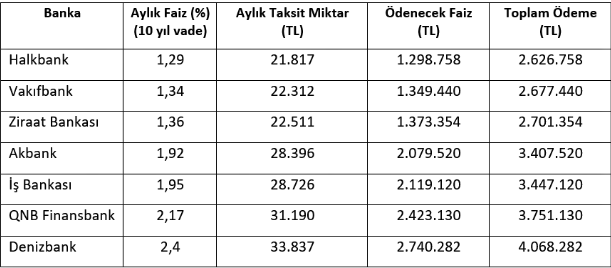 Kamu bankalarının konut kredisi faizleri yüzde 1,29 ila yüzde 1,34 aralığında değişiyor. Özellerde ise 1,95’ten başlayıp 2,40’a kadar çıkıyor.