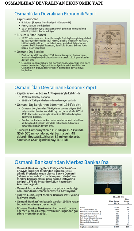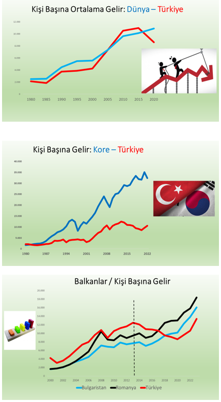 "Cumhuriyet dönemi, ekonomi yönetiminde zaman zaman başarılı olmuşsa da bu başarı ivmesi sonraki dönemlerde Cumhuriyetin ilan edildiği tarihten 1950’lara kadar süren başarılı gidiş kadar süreklilik gösterememiştir. Dünya ve Kore ile olan kişi başına gelir karşılaştırması grafiği bunu açıkça göstermektedir.