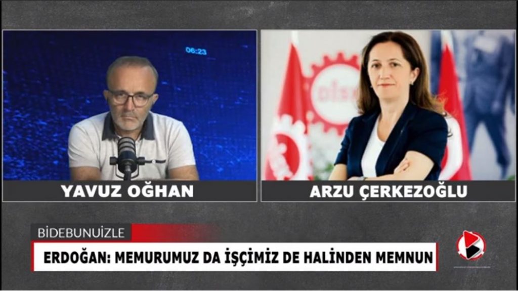 ‘Bidebunuizle’ yayınında Yavuz Oğhan’a konuşan DİSK Genel Başkanı Arzu Çerkezoğlu, Erdoğan’ın açıklamasının gerçeklikten kopuk olduğunu ve Türkiye’de çok ciddi bir yoksullaşma olduğunu söyledi. Türkiye tarihinde en büyük gelir kaybı yaşanan döneminde olduğunu belirten Çerkezoğlu şunları kaydetti: