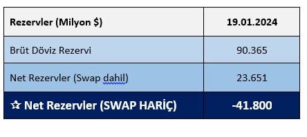 TCMB net rezervi 19 Ocak haftasında 5,8 milyar dolar geriledi. Bu oran Kkm'nin açıklandığından bu yana en büyük aylık rezerv düşüşü. pic.twitter.com/meak9tx5Z2