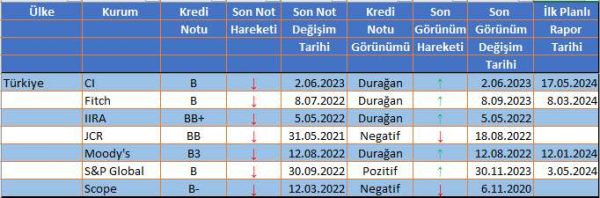 Diğer kredi derecelendirme kuruluşlarında Fitch, 8 Mart 2024 ve 6 Eylül 2024, CI Ratings, 17 Mayıs 2024 ve 16 Kasım 2024 tarihlerini için rapor takvimi belirledi.