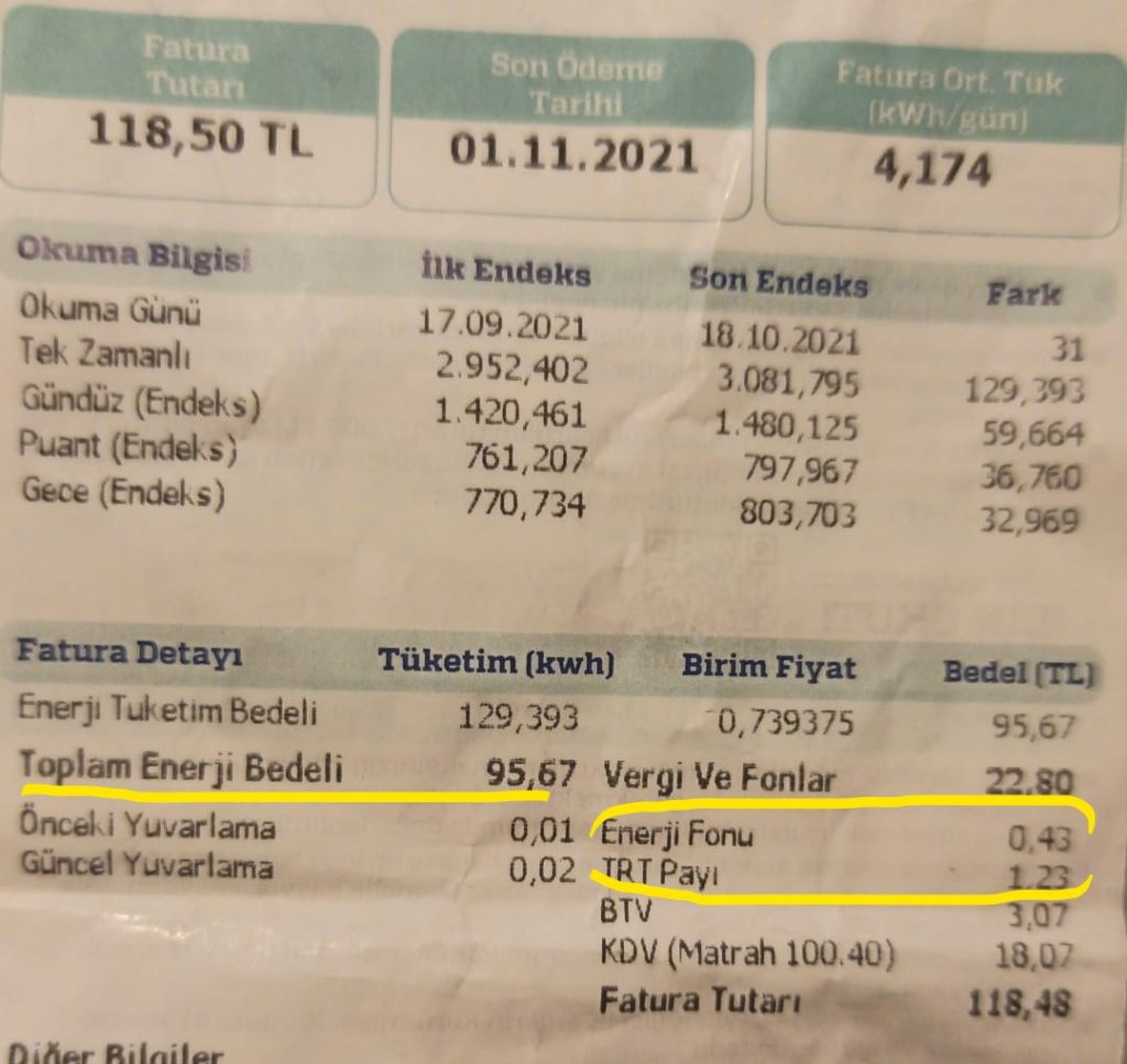 Cumhurbaşkanı Tayyip Erdoğan, 3 saat 40 dakika süren kabine toplantısının ardından açıklamalarda bulundu. Erdoğan, doğal gaz fiyatlarının Avrupa’da 115 dolardan 1100 dolara kadar çıktığını savunurken, “Biz ülkemizdeki vatandaşlarımızın konutlarda tükettiği doğal gazı halen yaklaşık 150 dolardan veriyoruz. Rakamlar çok açık net ortada” dedi. “Alış fiyatımıza göre baktığımızdaysa doğal gazı hane halkına yüzde 70 indirimle vererek 50 milyar liralık sübvansiyon yaptığımızı söyleyebiliriz” diyen Erdoğan, akaryakıtta da benzer durum olduğunu söyledi. 2021 için vatandaşların cebinden 127 milyar liralık ilave bir meblağın çıkmasını önlediklerini belirten Erdoğan, vatandaş başına 1500 liranın üzerinde enerji desteği verildiğini savundu. Erdoğan, elektrik faturalarındaki TRT (% 2) ve Enerji Fonu (yüzde 0.7) paylarının kaldırıldığını belirtti. Yani Erdoğan’ın indirimiyle 100 liralık bir fatura, elektriğe zam gelmezse 97,3 TL’ye inecek.