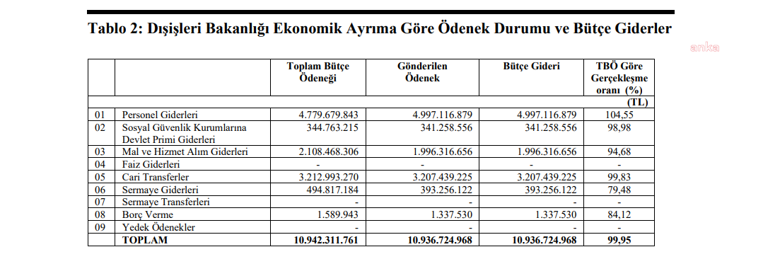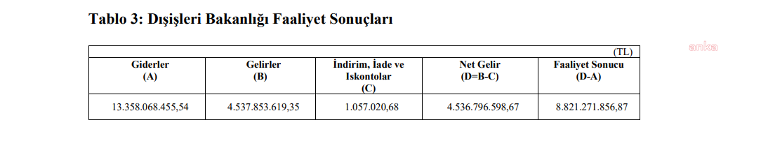 Bakanlık Bütçesinden yapılan harcamaların önemli bir kısmının yurtdışı teşkilata ait olduğu dikkate alındığında, işlemlerde kullanılacak döviz kurunun anılan yönetmelik hükümlerine uygun belirlenmemesi faaliyet sonuçları tablosunda yer alan tutarın ve bütçe rakamlarının doğruluğunu etkilemektedir.” (ANKA)