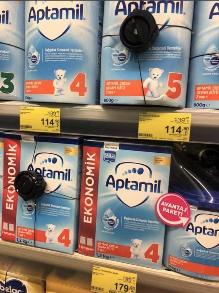 Fiyatlar yükseldikçe da bakkal ve marketlerde alarm takılan ürün türü her geçen gün artıyor. Bebek mamasından kahveye, baldan tıraş bıçağına her ay yeni bir ürünü ekstra alarmlar takılmış halde bulunuyor. Fiyatları artınca süte de alarm takılmaya başlandı. Alarmlı süt fotoğrafı sosyal medyada hızla yayıldı.