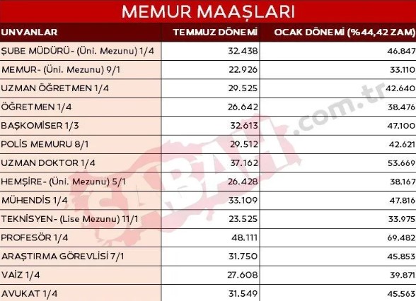 Tablo güncellendi: Memurların yeni zamlı maaşı ne kadar olacak?