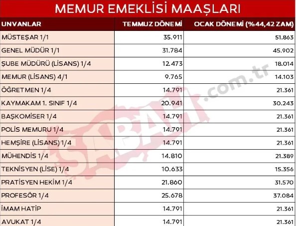 Sabah'ta yer alan habere göre, ekonomistlerin 6 aylık enflasyon beklentisi ve 15'lik toplu sözleşme zam teklifine göre yeni memur ve memur emeklisinin maaş hesaplamaları şöyle: