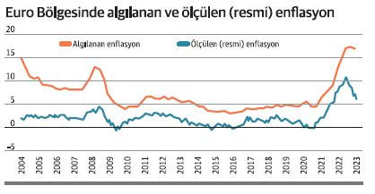 TÜİK’in derlediği bilgilere göre AB Euro Bölgesinde 2004 yılından itibaren hesaplanan halkın algıladığı enflasyon, ölçülen enflasyondan her zaman yukarıda seyrediyor. 2008 küresel krizinde bu fark daha da açılmış ve bireyler enflasyonu, ölçülen enflasyonun çok üzerinde hissetmiş. Aynı şekilde COVID-19 salgını nedeniyle 2020 yılının başlangıcından itibaren algılanan ve ölçülen enflasyon arasındaki fark daha da açılmaya başlamış. ECB verileri ülkelere göre değişmekle birlikte hissedilen en enflasyonun resmi enflasyondan 5 kat daha yüksek çıkabildiğini gösteriyor.