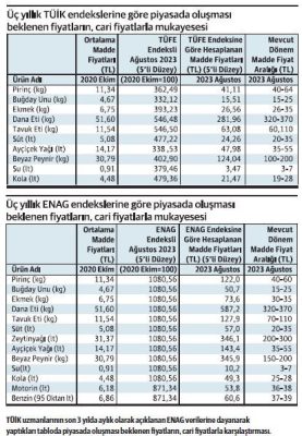 Edindiğimiz bilgiye göre uzmanlar “ENAG, enflasyon hesabı yayımına başladığı 2020 yılından bu yana, kendi verileriyle TÜFE’de kaydedilen artışları sitesinde gösteremiyor” saptamasına sunumlarında yer veriyor. Ekonomi yönetimine yapılan bir sunumda şöyle deniliyor: “ENAG’ın internet sayfasından erişim sağlanan bir sayfalık metodolojik dokümanda, Tüketici Fiyat Endeksi hesaplaması için geçerli olan yöntem ve uygulamalara ilişkin bilgiler paylaşılmamaktadır.