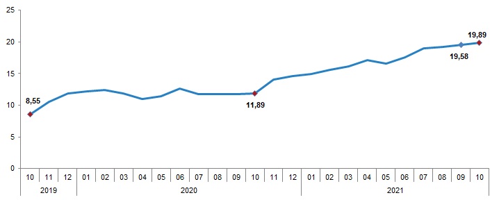 Ekim ayı enflasyon rakamları yine kafaları karıştırdı. Yüzde 20 demeye bile TÜİK’in içi elvermedi; “Ekimde enflasyon yüzde 2,39 arttı, yıllık yüzde 19,89 oldu” dedi. Bağımsız araştırma grubu ENAG’ın raporuna göre ise enflasyon ekim ayında yüzde 6,90 artış gösterirken 12 aylık dönemdeki artış oranı yüzde 49,87 oldu. Bir başka veri ise devletin her yıl artış oranlarına paralel güncellediği “yeniden değerleme oranı” yani devletin harç, ceza vs gibi vatandaşa kestiği faturalardaki artış oranı… Bu ocaktan itibaren geçerli olacak artış yüzde 36,20 oldu. Tabi bu oran devletin de TÜİK’e itibar etmediğinin bir göstergesi.