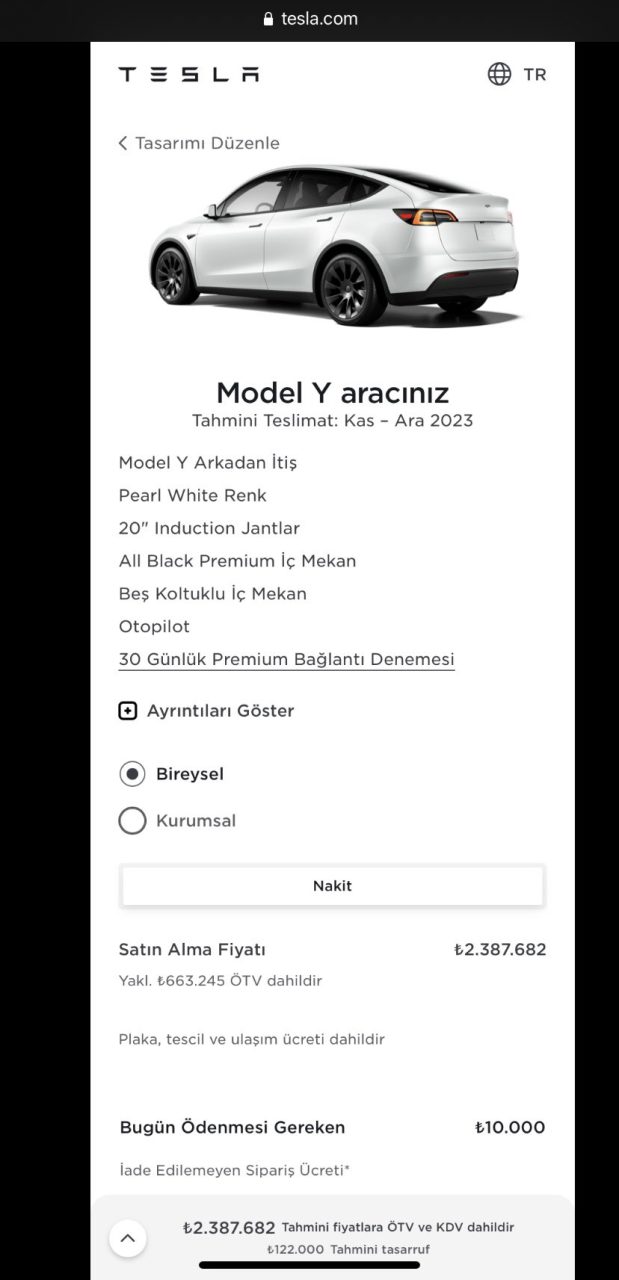 Türkiye'de bir kişi Tesla Model Y alırken 83 bin 322 euro (2 milyon 387 bin) lira öderken, aynı araç Fransa'da 40 bin 990 euro (1 milyon 188 bin TL)