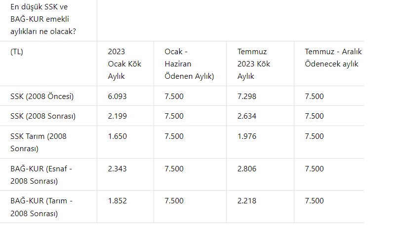 7500, 7750, 8000, 8250, 8500 TL emekli maaşı alanların yeni emekli maaşları
