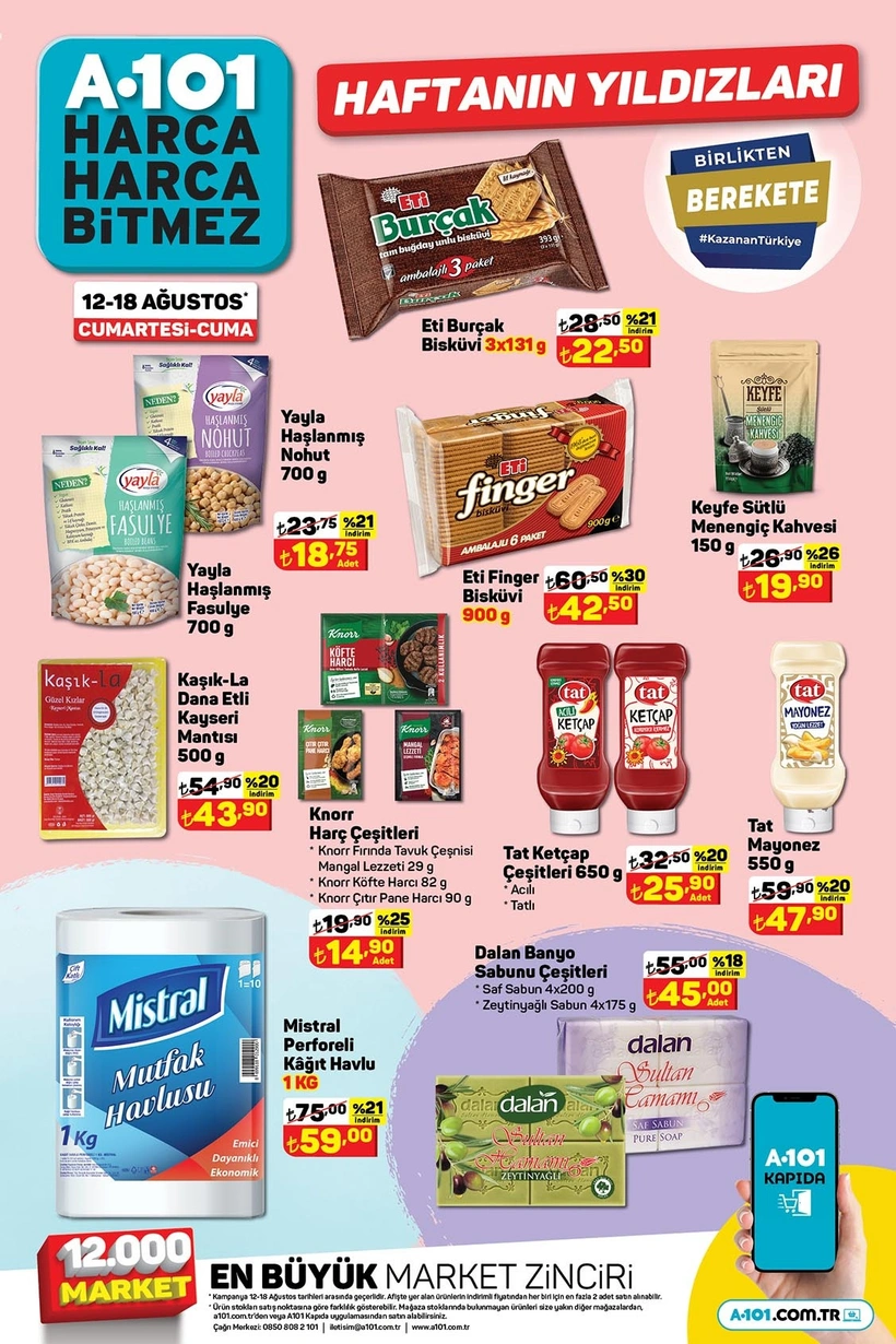 A101, 12-18 Ağustos aktüel kataloğunu yayımladı.