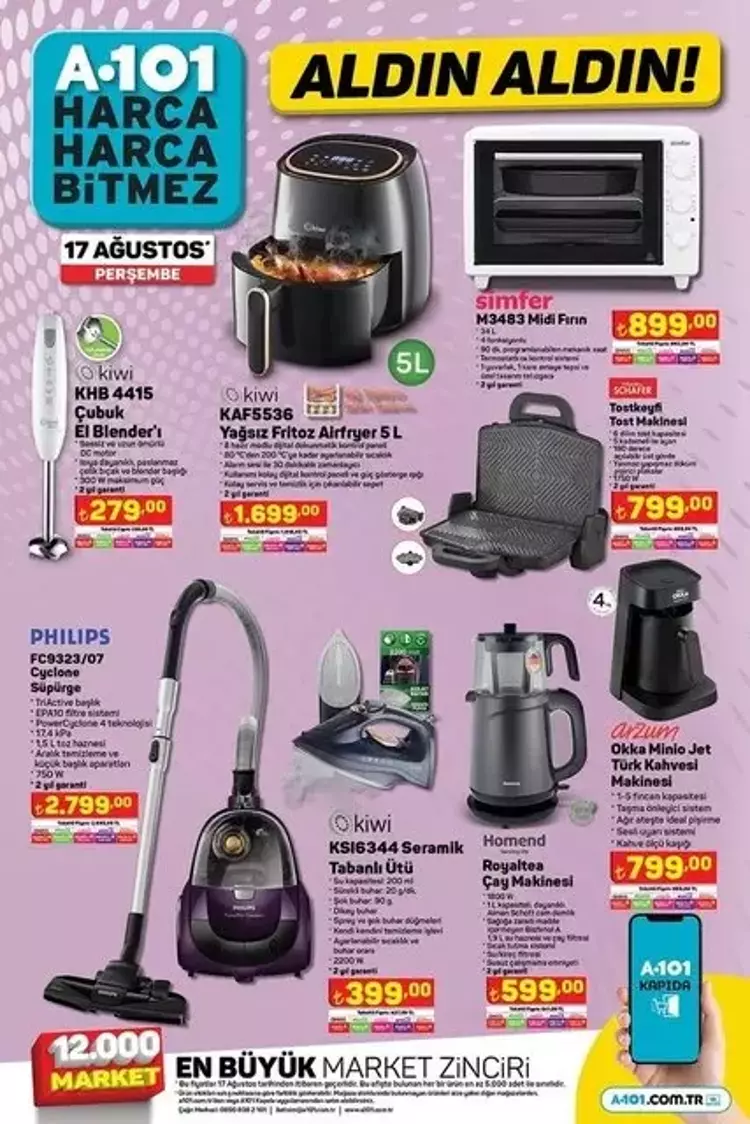 A101, 17 Ağustos aktüel kataloğunu yayımladı.A101 17 Ağustos Aldın Aldın fırsatları şöyle: