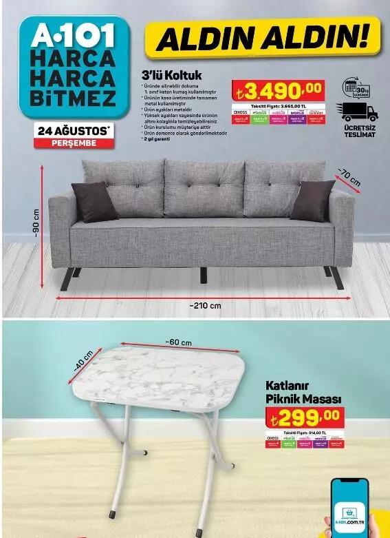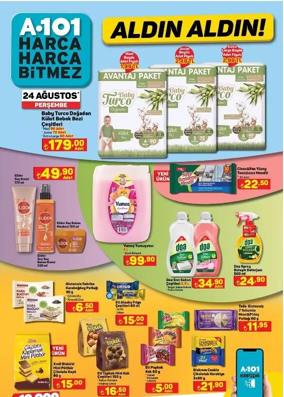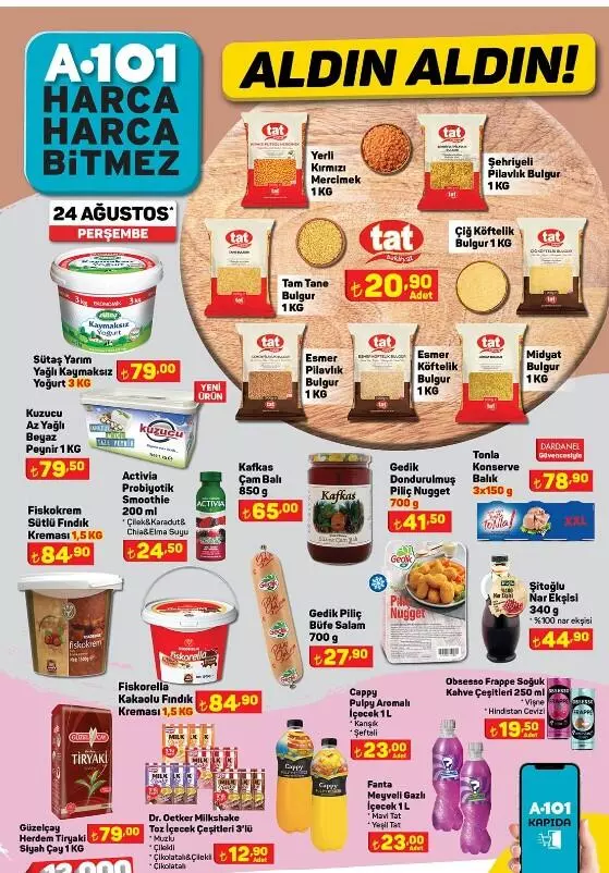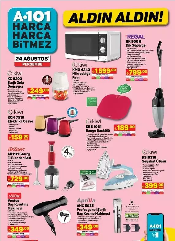 A101, 24 Ağustos aktüel kataloğunu yayımladı.A101 24 Ağustos Aldın Aldın fırsatları şöyle: