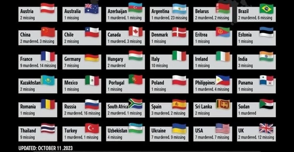 NTV'de yer alan habere göre İsrail Hükümeti Basın Ofisi’nden alınan bilgilere göre, Hamas’ın 7 Ekim’de gerçekleştirdiği terör saldırısında bir Türk vatandaşı hayatını kaybetti, bir Türk vatandaşından da haber alınamıyor.
