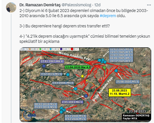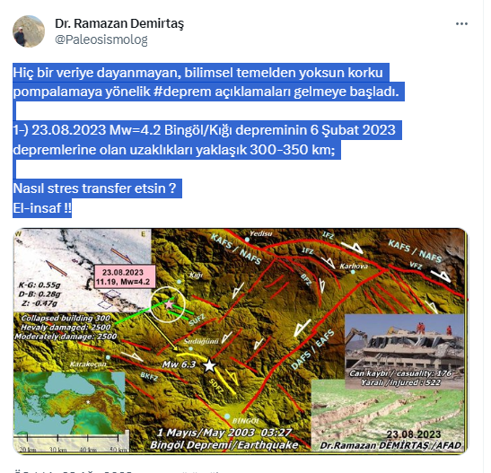 1-) 23.08.2023 Mw=4.2 Bingöl/Kığı depreminin 6 Şubat 2023 depremlerine olan uzaklıkları yaklaşık 300-350 km; Nasıl stres transfer etsin ? El-insaf !!