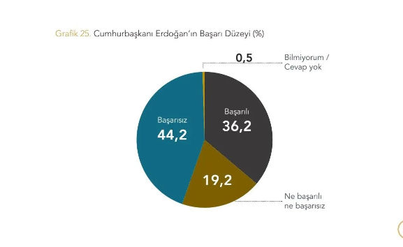 Yöneylem araştırma yaptığı anketi kamuoyu ile paylaştı. Buna göre, Cumhurbaşkanı Recep Tayyip Erdoğan'ı başarılı bulanların oranı, başarısız bulanlardan 8 puan geride.