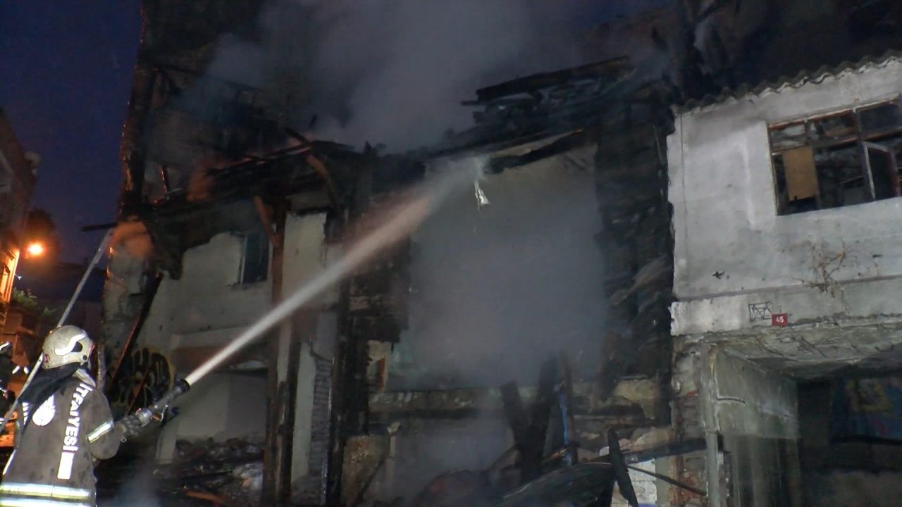 Fatih'te, 2 katlı metruk bina sabah saatlerinde alev alev yandı. Yangın itfaiye ekiplerinin müdahalesi sonucu söndürülürken, binanın hemen yanındaki otelde kalanlar bir süre panik yaşadı.