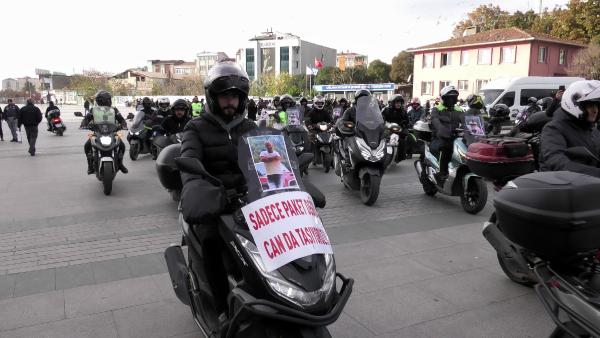 Yapılan basın açıklamasının ardından motosikletli kuryeler tepkilerini göstermek için korna çalarak adliyenin bulunduğu meydandan ayrıldı. (DHA)