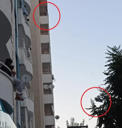 Balkona çıkıp bağırmaya başlayan H.M., daha sonra evdeki televizyon, bisiklet, un çuvalı, sehpa, elbise askılığı gibi eşyaları sokağa fırlattı.