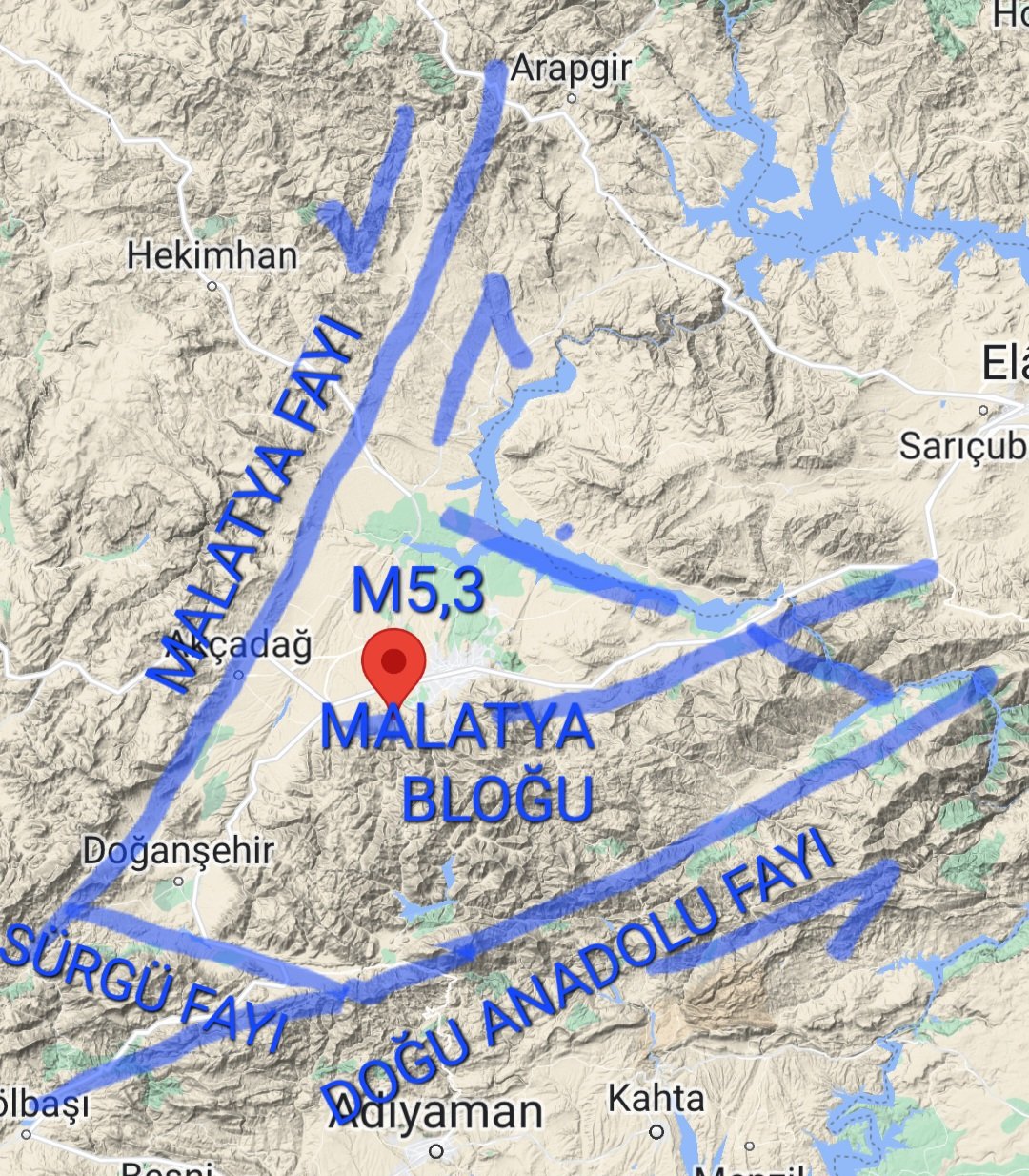 Prof. Dr. Osman Bektaş, "6 Şubattan bu yana Maraş bloğunun doğu, kuzey ve batı kenarlarında gelişen sırasıyla 7,8-7,6 -5,6 sismik aktivite etkinliği aynı fay sistemine ait kuzeydeki MALATYA BLOĞUNA geçti" dedi. Bektaş, sözlerine şöyle devam etti: "5,3 depremi artçı olsada bundan daha büyük deprem olma olasılığı var."
