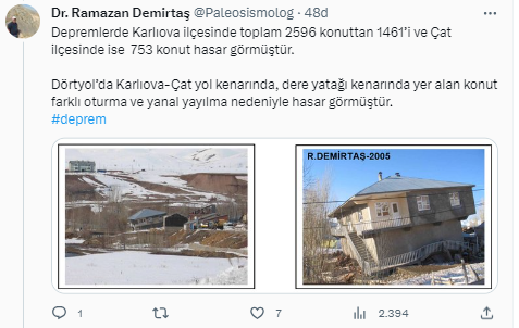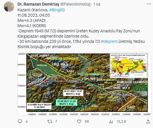 Prof. Dr. Ramazan Demirtaş paylaştı: Bingöl depremi ne anlama geliyor?