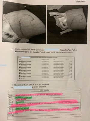 "Dosyaya bugüne kadar duyduğum en ırkçı söylemlerin yer aldığı (haberlerde çoğuna yer verilmeyen) 6 adet ses kaydını sunmamıza, faillerce suçları örtbas edilmek için sözde cinsel saldırıyla suçlanan müvekkilimin olaydan sadece yarım saat önce üniversite güvenliğini aradığına dair arama kayıtlarını sunmamıza, odanın kartlı giriş kayıtlarından ve failin adli muayene ve karakol ifadesine yansıyan anlatımlarındaki çelişkilerden cinsel saldırının hiç vuku bulmadığının açıkça anlaşılmasına, (muayenede sözlü taciz diyor.) müvekkilin yüzüne ve karnına onlarca dikiş atıldığını gösteren adli raporlara rağmen savcılıkça şüpheli H.E.K.nin ikmalen istendiği için 1 ayı aşkın süredir ifadesi bile alınamadı."